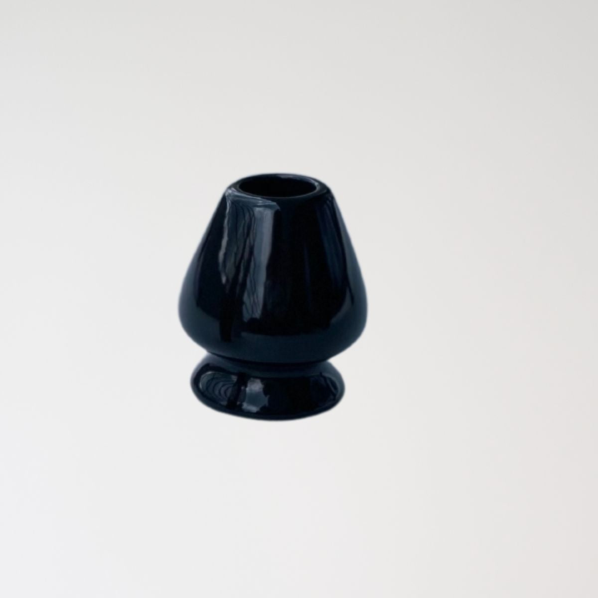 Hochwertiger Matcha Besenhalter aus Keramik. Farbe: schwarz, glänzend.